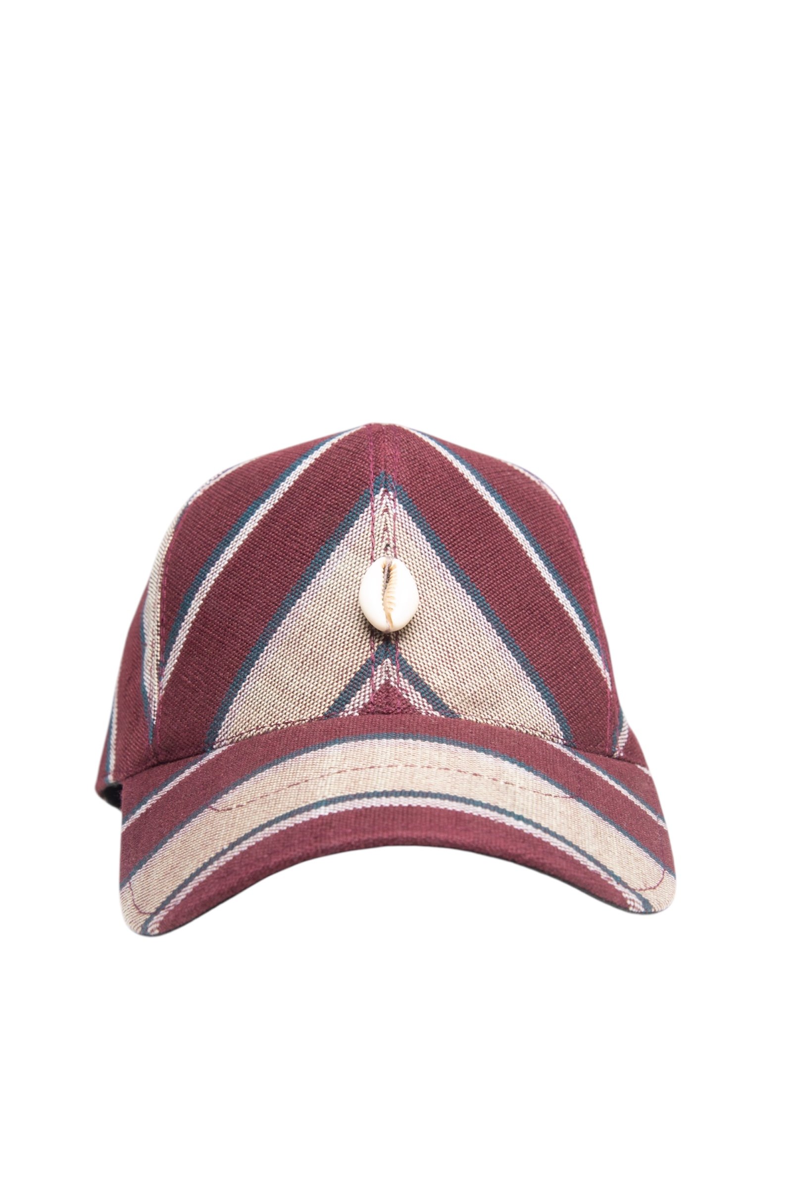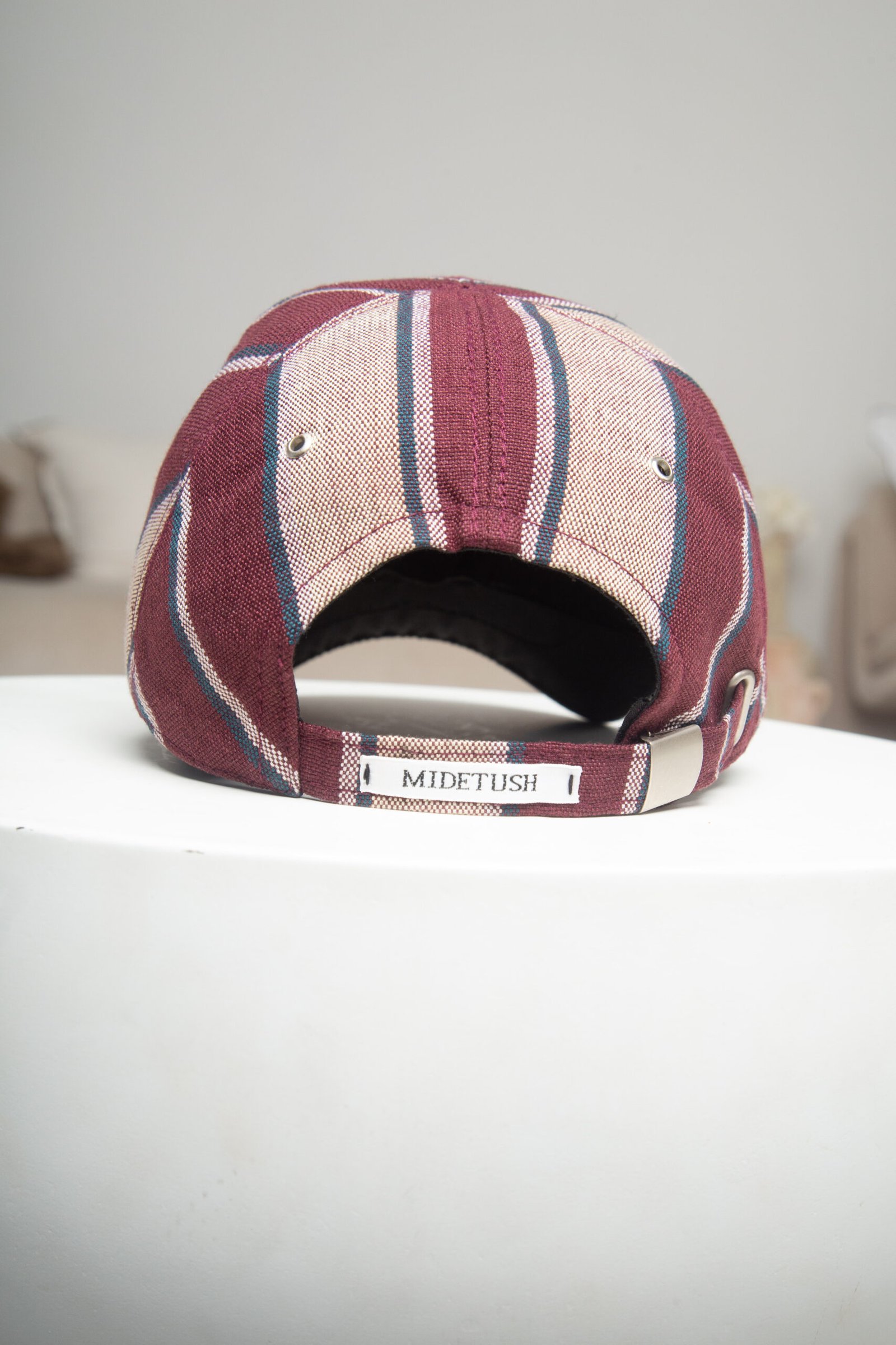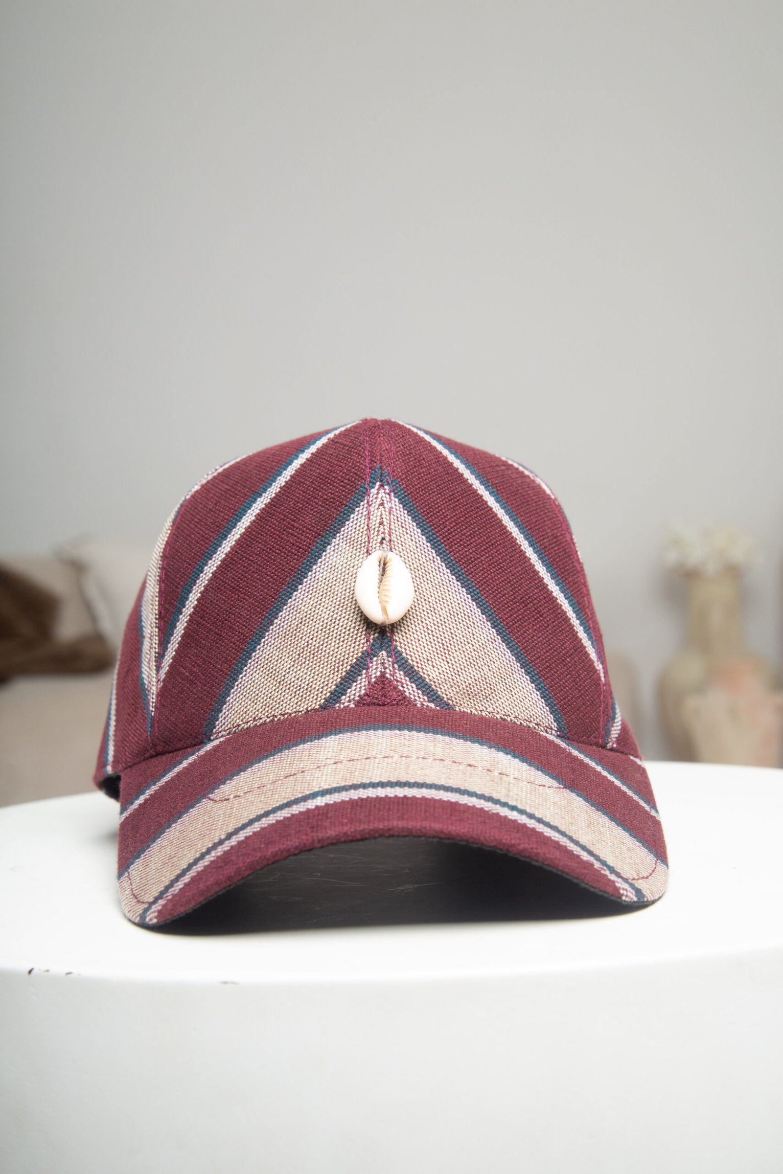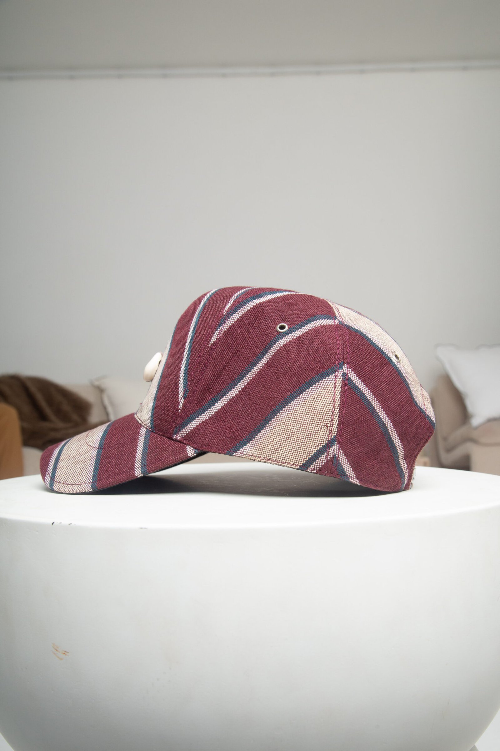 Multicoloured Striped Aso-Oke Baseball Cap in Burgundy and Beige fuses contemporary design