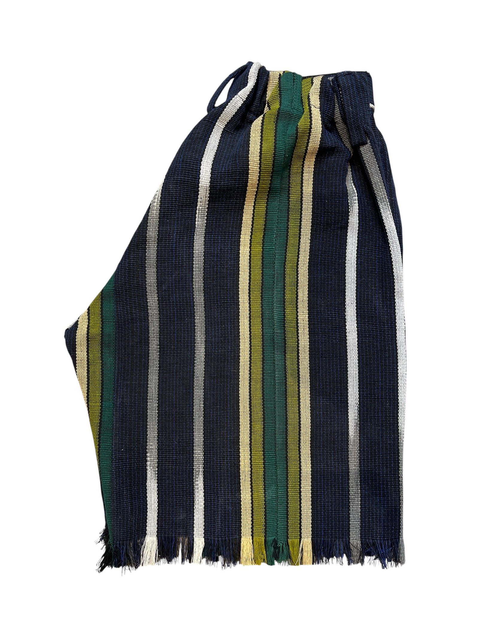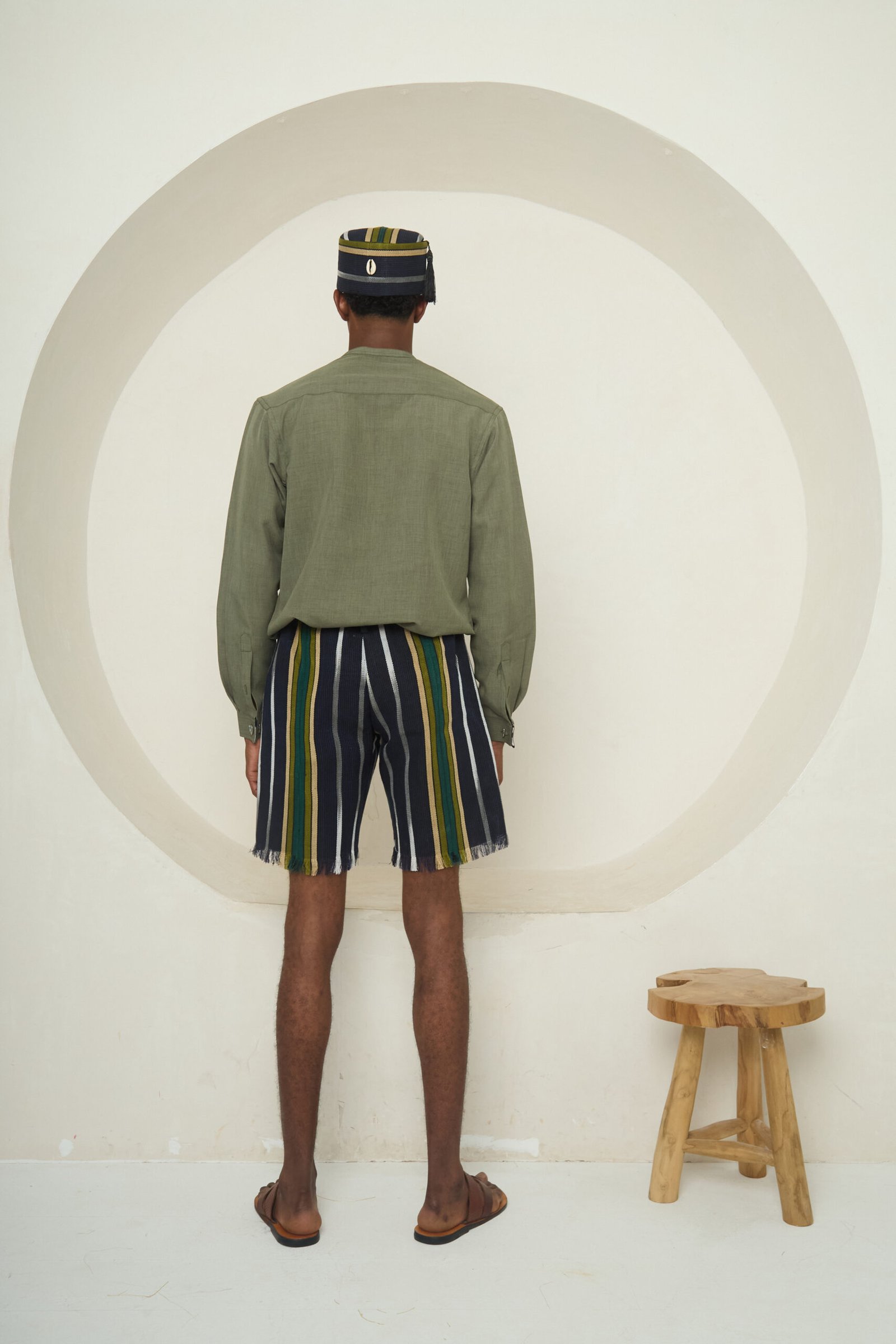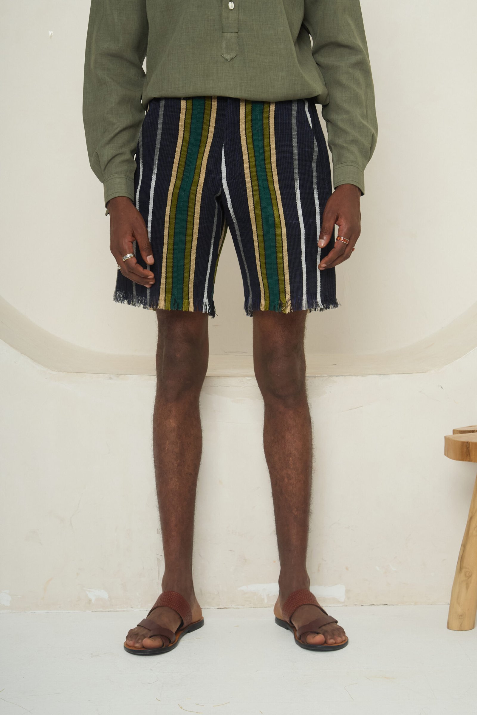 Crafted from handwoven multicoloured Aso-Oke, this short feature